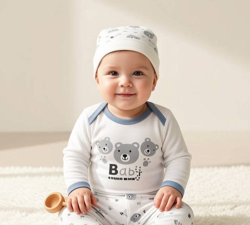 ست بیمارستانی ۳ تیکه نوزادی مینی هانی | صورتی | ترند وارداتی | نخ پنبه درجه یک | دخترانه پسرانه| بلاوین ساپ