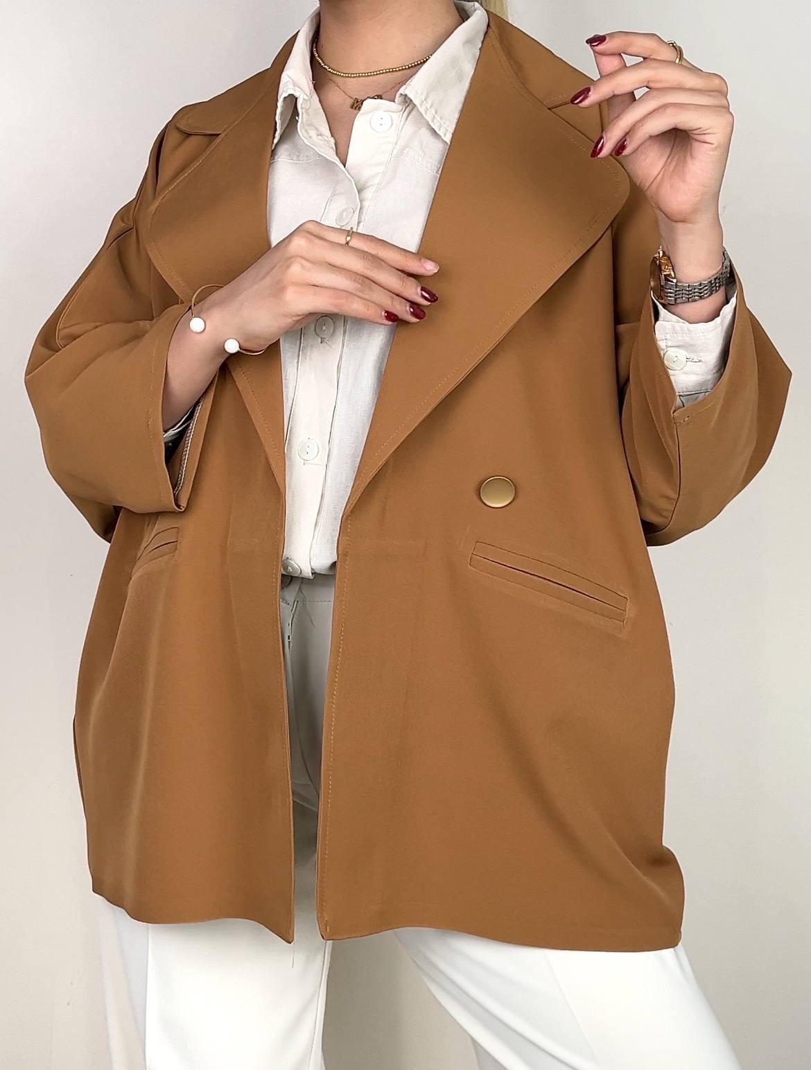 این مانتو کت شیک و خوشدوخت، انتخابی ایدهآل برای استایلهای رسمی، اداری، مهمانیهای نوروزی و ستهای کلاسیک و لاکچری است و بهراحتی با شلوار پارچهای، جین یا بوت و کفش رسمی ست میشود