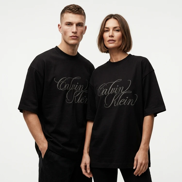تیشرت وارداتی گلدوزی شده مدل کالوین کلین Calvin Klein | رنگ مشکی | جنس ماکان خارجی درجه یک عمرانه | قواره باکسی لش اورسایز زنانه و مردانه | ترند پرفروش