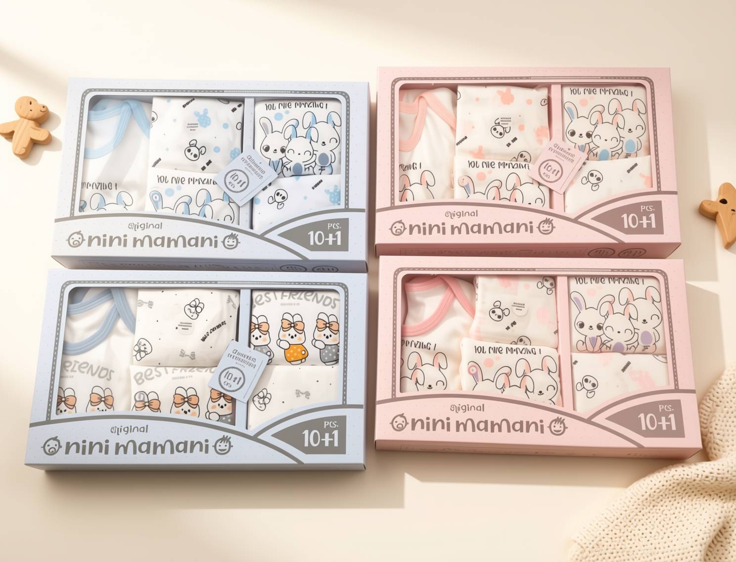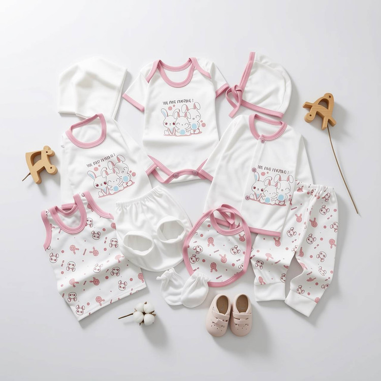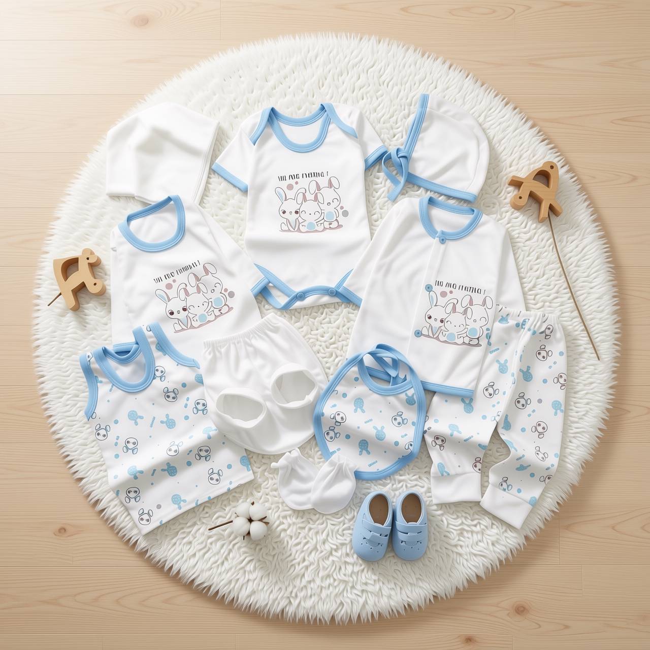 ست پرفروش ۱۱ تکه نوزادی مینی هانی | ترند سیسمونی | نخ پنبه درجه یک | مناسب ۰ تا ۳ ماه | دخترانه پسرانه