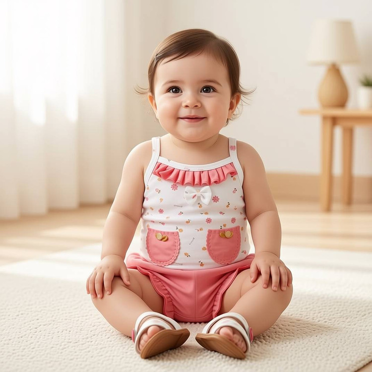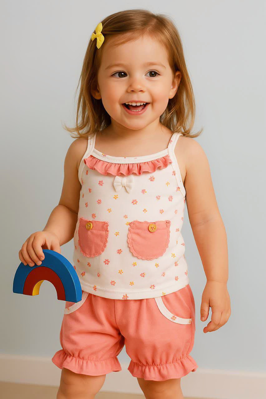 ست وارداتی تاپ و شورت دخترانه سانلی | استایل نرم نقلی و خنک | نخ پنبه اعلا | سایز ۶ ماه تا ۳ سال