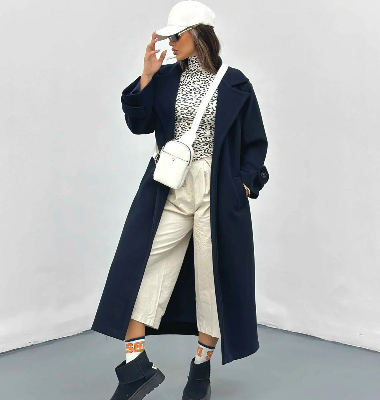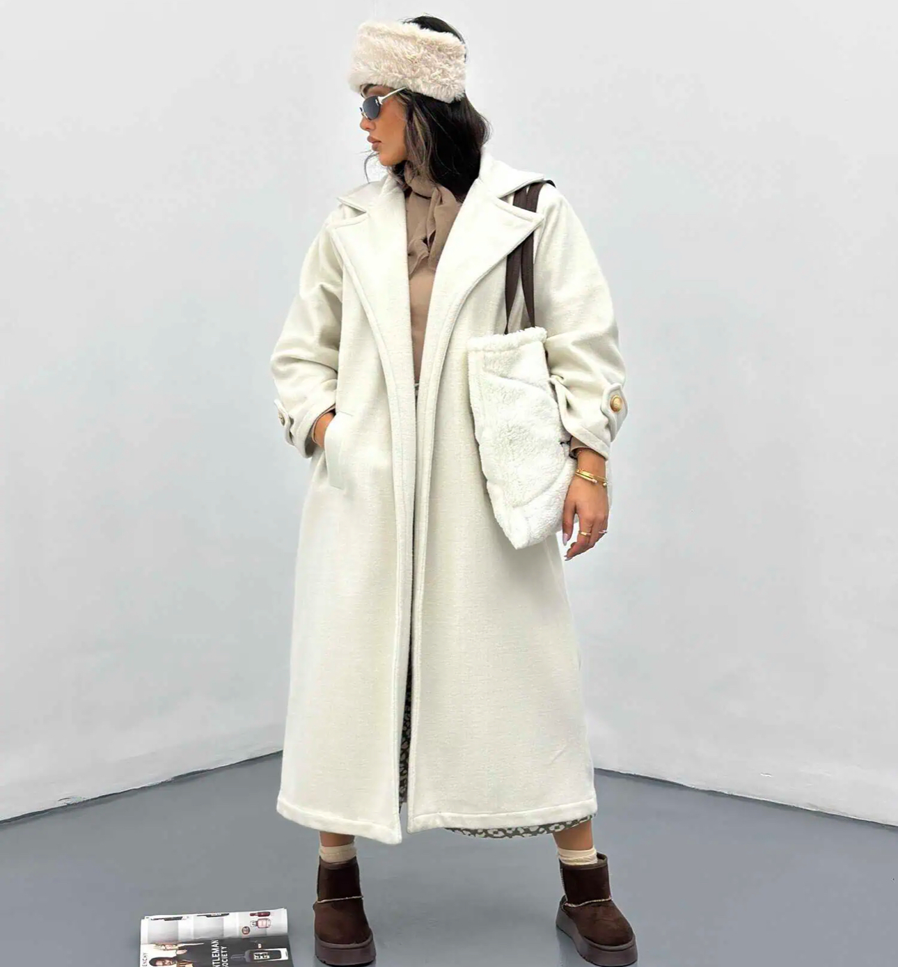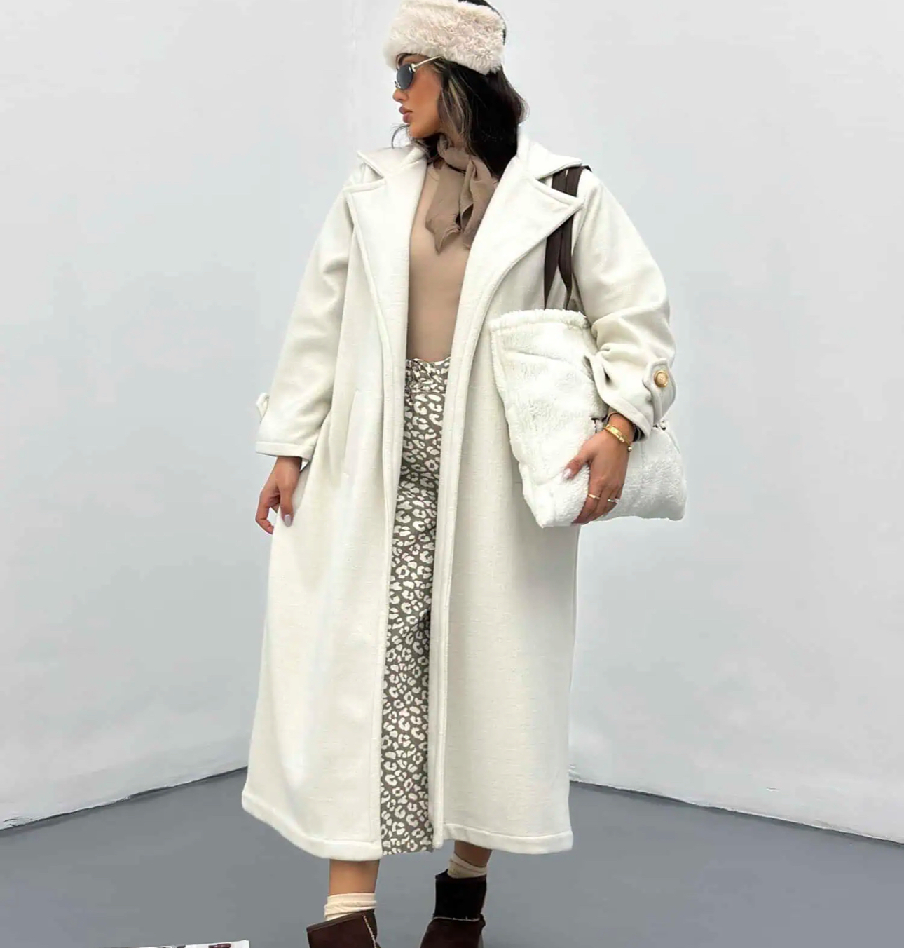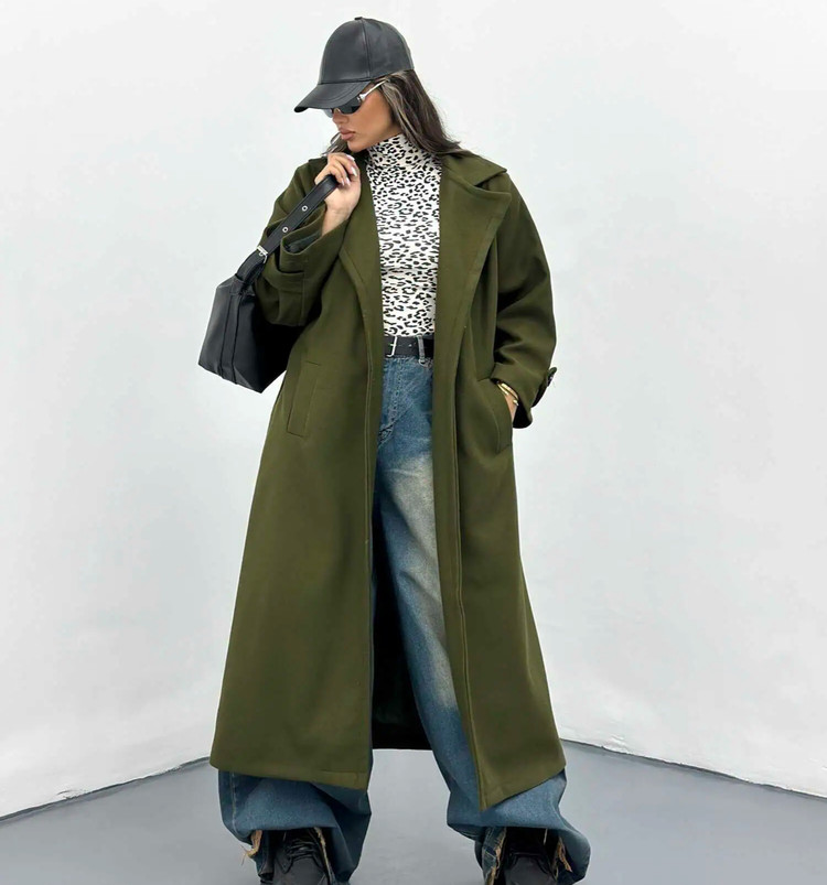 کت پالتو فوتر بلند زنانه یقه انگلیسی| مدل ترند اروپایی استردار | فریسایز 36 تا 44 | مناسب استایل کلاسیک، شیک، رسمی اداری کارمندی و دانشجویی