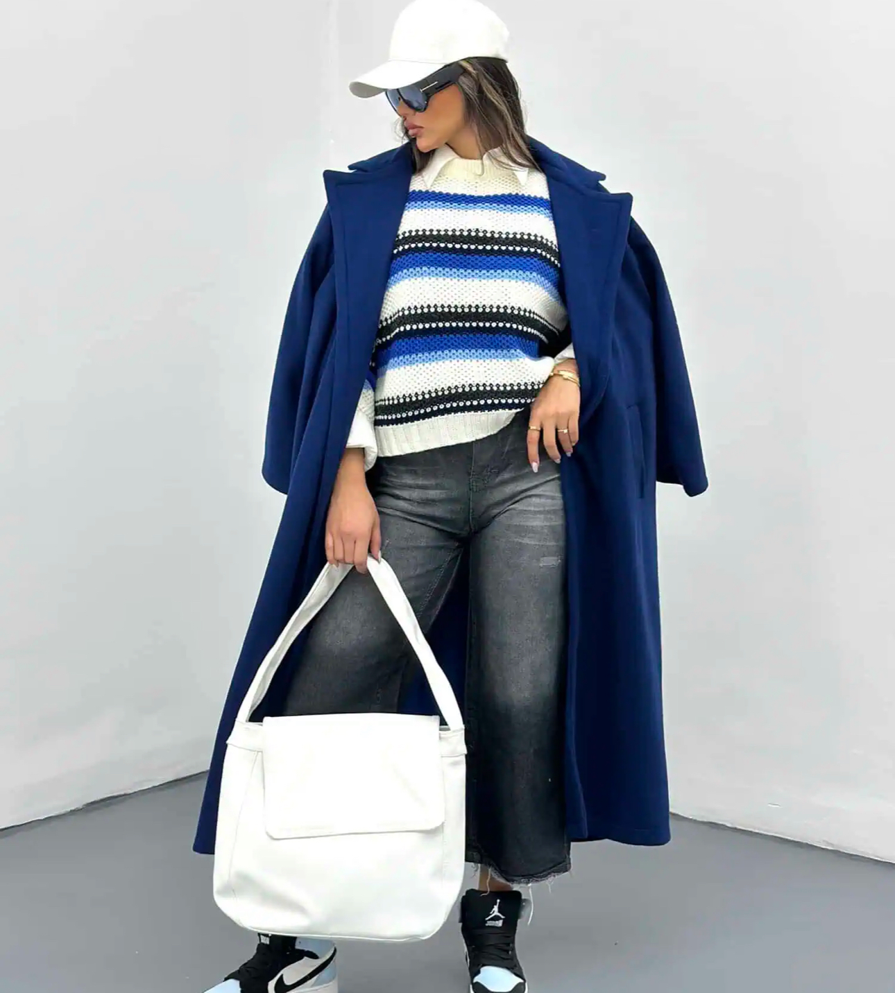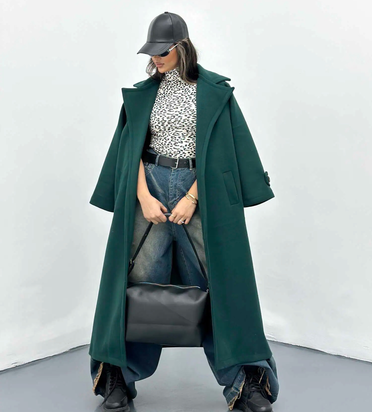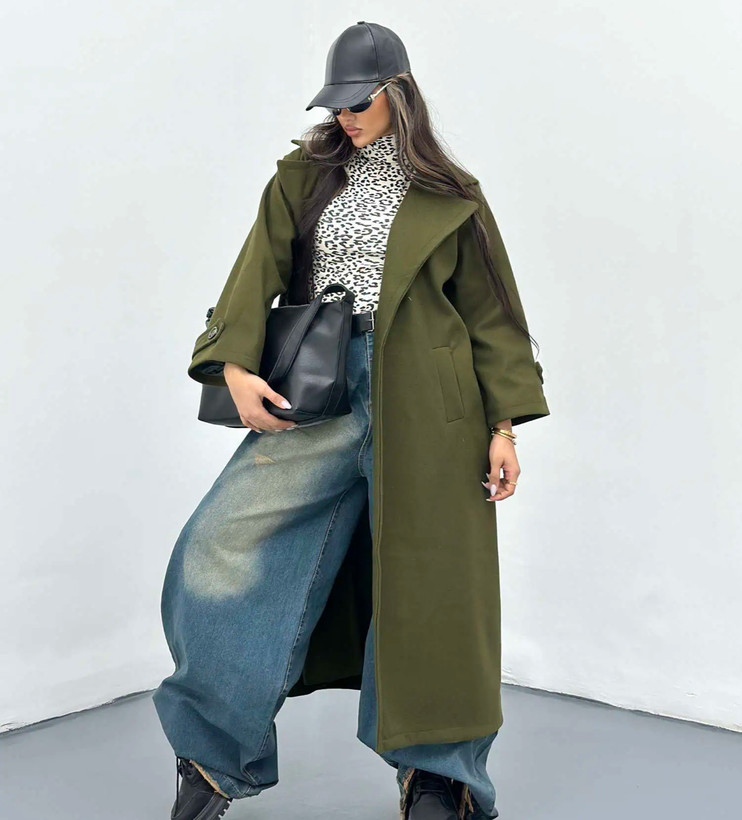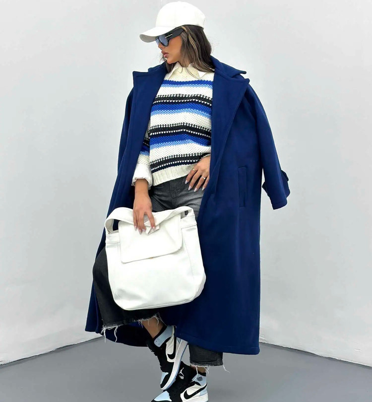 کت پالتو فوتر بلند زنانه یقه انگلیسی| مدل ترند اروپایی استردار | فریسایز 36 تا 44 | مناسب استایل کلاسیک، شیک، رسمی اداری کارمندی و دانشجویی