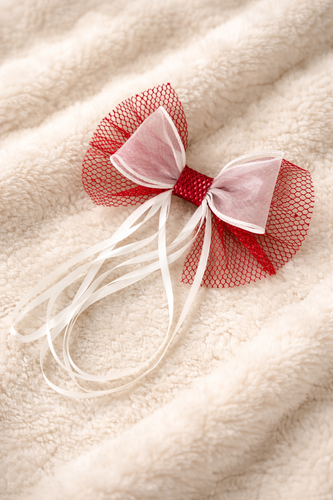 گلسر توری پاپیونی زنانه قرمز و سفید برند بلوین | اکسسوری مو شیک و فانتزی پینترستی
