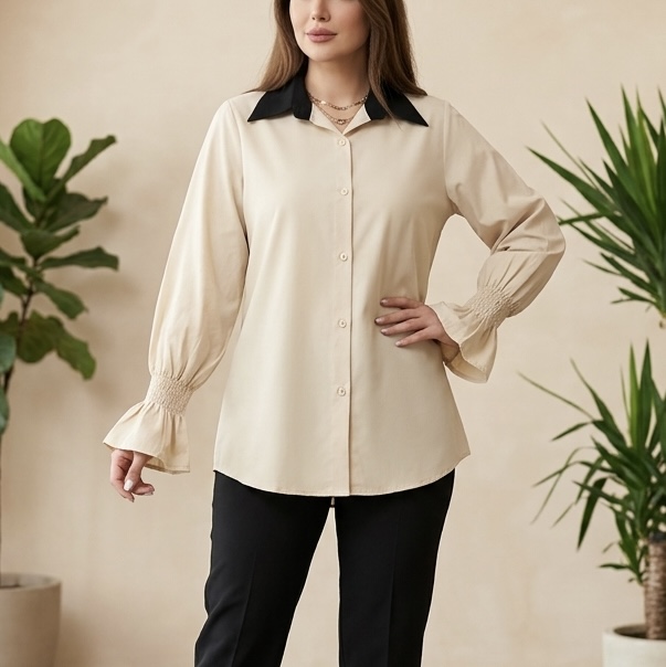 شومیز یقه دار بیسیک فرنچ استایل | جنس وارداتی ترک | فری سایز (۳۸ تا ۴۶) | قد ۷۵ | جنس پنبه درجه یک