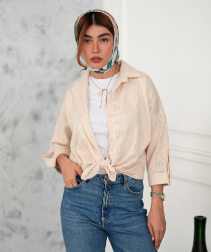 مانتو شومیز عروسکی گلورا وارداتی ترک | ترند پینترستی زنانه رنگ کرم استخوانی | قد ۷۵ | فریسایز ۳۸ تا ۴۶