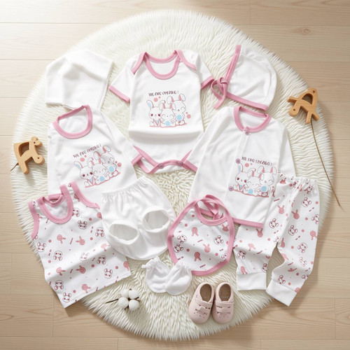 ست بیمارستانی ۱۱ تکه نوزادی مینی هانی | ترند وارداتی | نخ پنبه درجه یک | مناسب ۰ تا ۳ ماه | دخترانه پسرانه